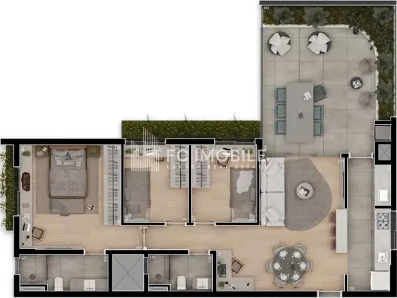 Com uma área privativa de 105 m², este apartamento Garden destaca-se pelo seu layout inteligente e funcional, ideal para famílias que buscam um espaço acolhedor e prático.