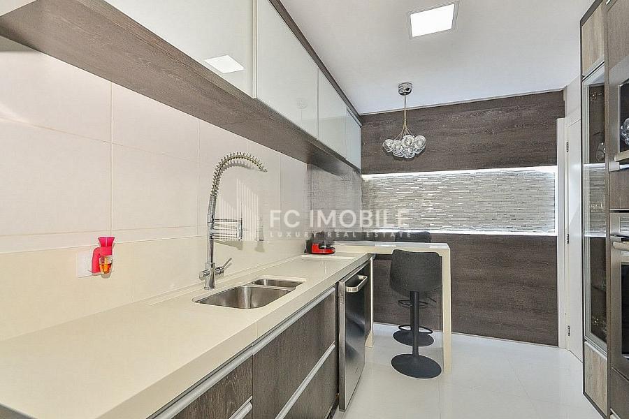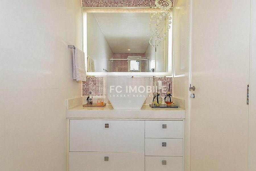 Este apartamento dispõe de 3 suítes, 1 banheiro social, cozinha e lavanderia separada, além de uma dependência de serviço. Ele pode ser entregue mobiliado e decorado, dependendo da negociação.