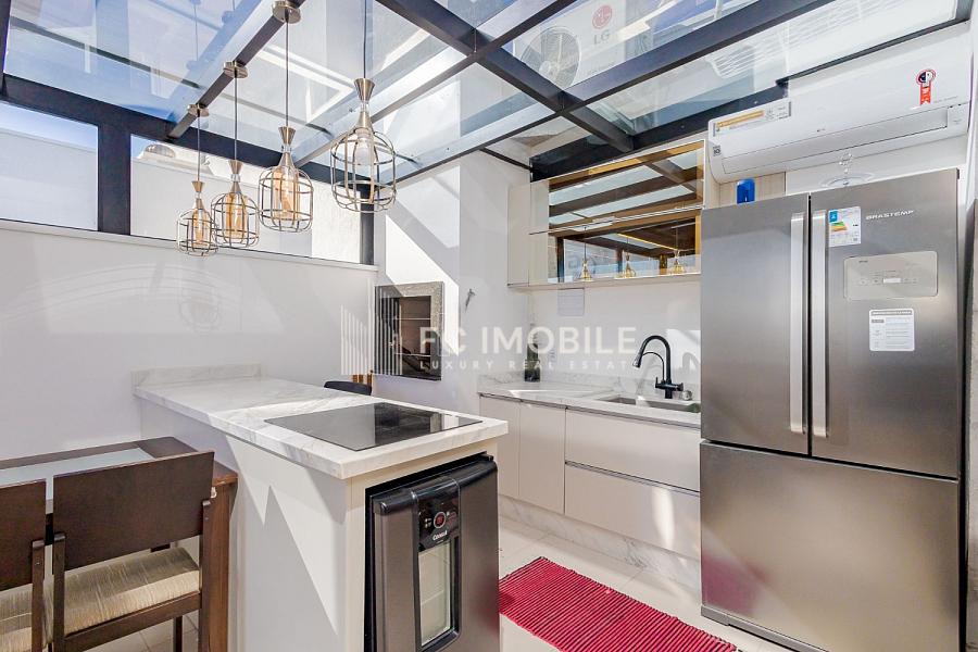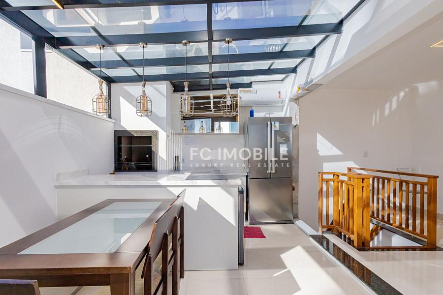 Ao entrar nesta cobertura, você será recebido por uma cozinha moderna e funcional, área de serviço conveniente, espaçosa sala de estar e sala de jantar elegantemente decoradas, além de um incrível espaço gourmet com churrasqueira, ideal para momentos especiais com amigos e familiares. O ambiente ainda conta com 1 requintado banheiro social, 3 quartos bem distribuídos, sendo 2 suítes para garantir privacidade e conforto, e 2 vagas de garagem para sua comodidade.