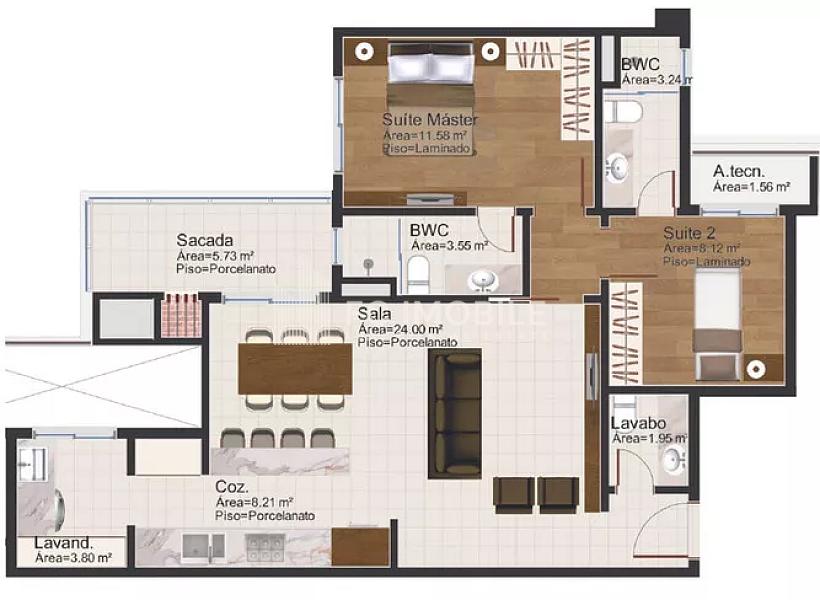 86 m² privativos - 2 suítes