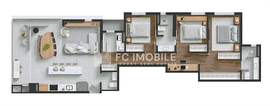 • 3 Quartos sendo 1 suíte