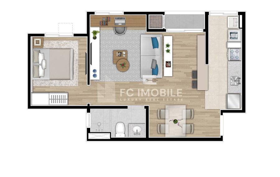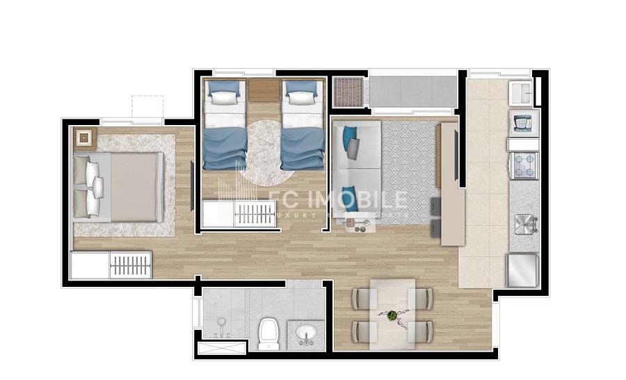 • Espaço e versatilidade: Uma planta inteligente que oferece 2 dormitórios aconchegantes, sala de estar e jantar integradas, cozinha americana e área de serviço completa, tudo isso em um ambiente claro e arejado.