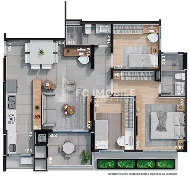 Com 89 m² de área privativa, este apartamento foi projetado para proporcionar bem-estar e funcionalidade. O layout inclui uma área de serviço prática, uma cozinha moderna que se integra à sala de estar e à sala de jantar, criando um ambiente acolhedor e ideal para momentos compartilhados.